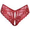 Lavishly crafted crotchless panties by Cottelli LINGERIE are made from red floral lace. Soft and elastic for high wearing comfort. With a cut-out front and inviting crotch. With variable satin ribbon lacing above the buttocks.