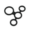 This cockring has four rings that are attached to each other, one with a diameter of 4 cm, one with a diameter of 2.5 cm and two with a diameter of 2 cm. The largest ring 4 cm needs to be worn around the scrotum. The second ring 2.5 cm should be worn around the shaft. The two smaller rings both 2 cm should be placed around one testicle each, splitting the balls.