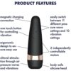 This elegant, black clit vibrator stimulates you with 11 pressure wave levels and combines 10 breathtaking vibration rhythms. With its velvety soft silicone attachment, it gently surrounds your clitoris and takes you to cloud 9 with no contact. The pressure waves and vibration rhythms can be controlled separately, offering 110 exciting possible combinations, so there’s never a dull moment with this miracle worker. The powerful performance of the Satisfyer Pro 3 will send you into twitching ecstasy, giving you orgasms as you’ve never experienced before. The elegant design and rose gold accents of this clit vibrator also make it a perfect gift for your best friend.