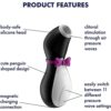 The Satisfyer Pro Penguin Next Generation fits comfortably in the palm of your hand with simple controls at the base, allowing you to easily change speeds. The curved head and precision tip creates never-experienced-before climaxes with 11 different programs. USB charging cable included.