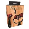 Slip into this gorgeous, lace up corset, strapon, made of plush red lace fabric. Fourway adjustable straps for up to 60 inch hips. Perfectly placed pocket that could hold a bullet vibrator Not included for clitoral stimulation. Accommodates dildos with flared base; includes 3 interchangeable rubber Orings 1.5 inch, 1.75 inch, and 2 inch. Machine washable; Dildo sold separately.