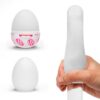 The compact, disposable masturbator Egg Curl from Tenga has a stimulating grooved and spiral texture inside. The very flexible masturbator sleeve is inside the egg-shaped case and can be used for a hand job with the included lubricant.